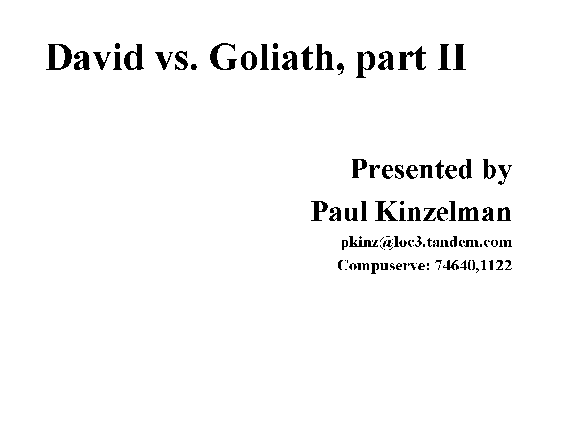 (Note that the email address in the slides is no longer current.) I can be reached at paul@kinzelman.com